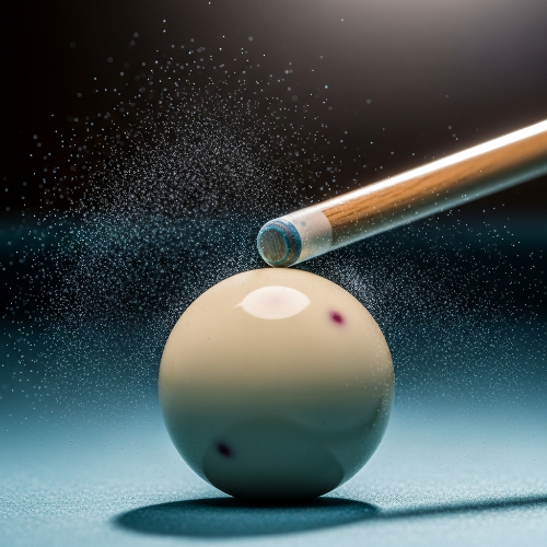 [이미지 삽입 구간: 당구 큐 끝(팁)이 공의 윗부분이나 아랫부분을 겨냥하는 클로즈업 샷]
