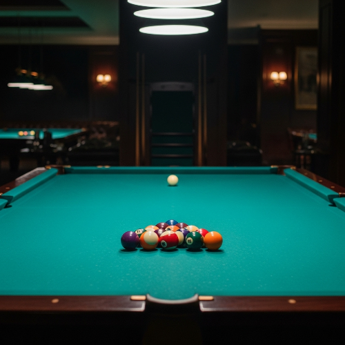 [이미지 삽입 구간: 깨끗하고 세련된 당구대 위에 당구공들이 놓여 있는 정적인 모습]