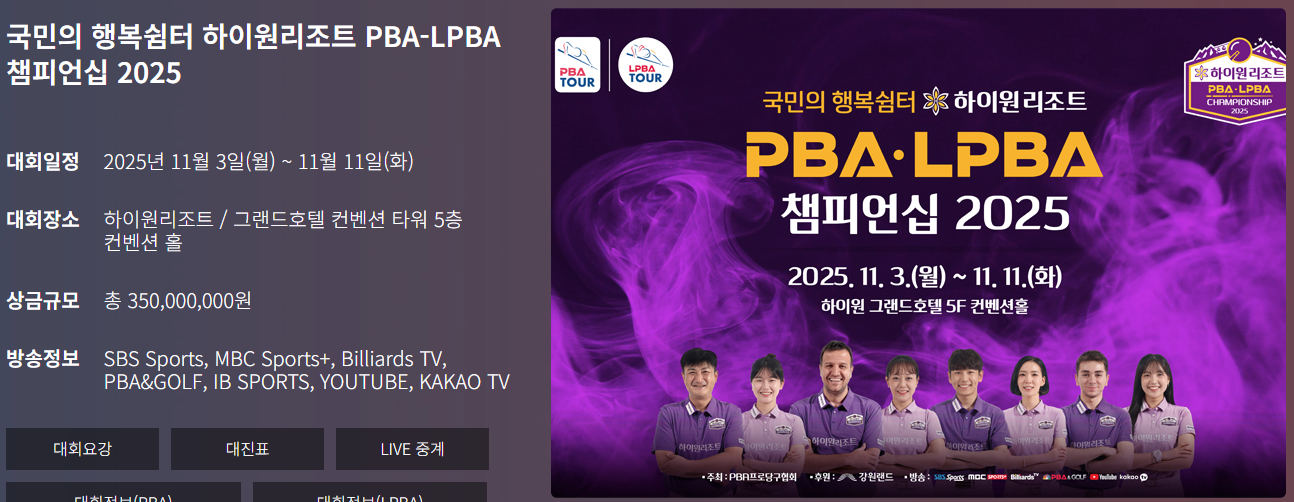 💊 [하이원리조트 PBA-LPBA 챔피언십 2025] 대회 일정 · 상금 · 경기 방식 총정리