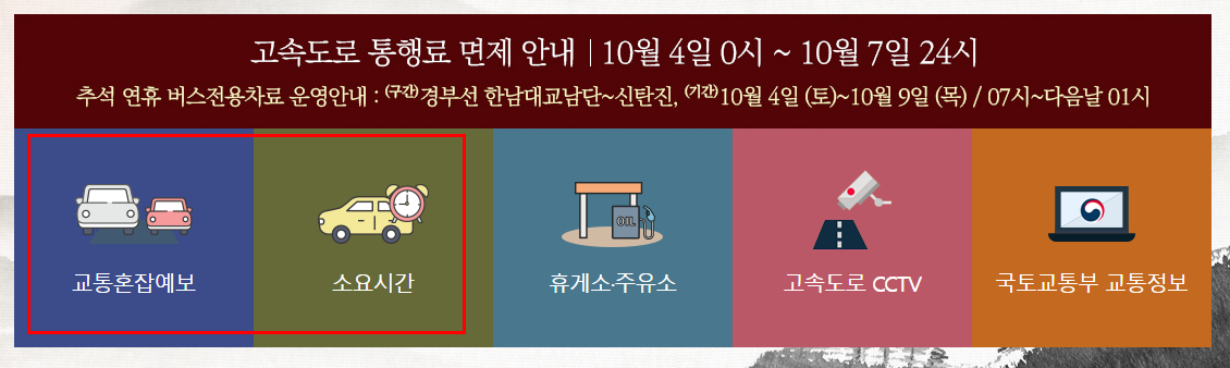- 최대 정체 시간 : 추석 당일 오후 1시 ~ 자정까지
