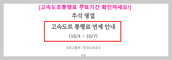 그리고 추석연휴 동안 고속도로통행료무료가 적용되는 날을 잘 기억해 주세요!