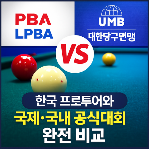 | 주체 | PBA 프로당구협회 | UMB(세계연맹) + 대한당구연맹(KBF) 등 각국 연맹 |